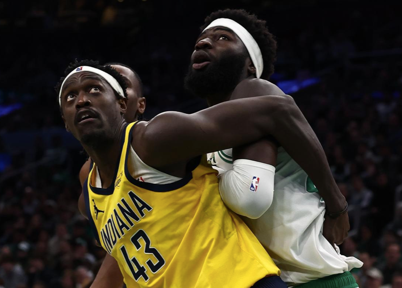 易边再战,步行者进攻状态有所回暖,西亚卡姆连续突破拿分,凯尔特人立马做出回应,布朗突破打进,分差重新拉开到20分以上,不过步行者还在不断追分,沃克突破打进,打出一波16-4攻势缩小分差,谢泼德三分命中分差来到个位数,西蒙斯三分回敬稳住,三节打完凯尔特人91-78领先。